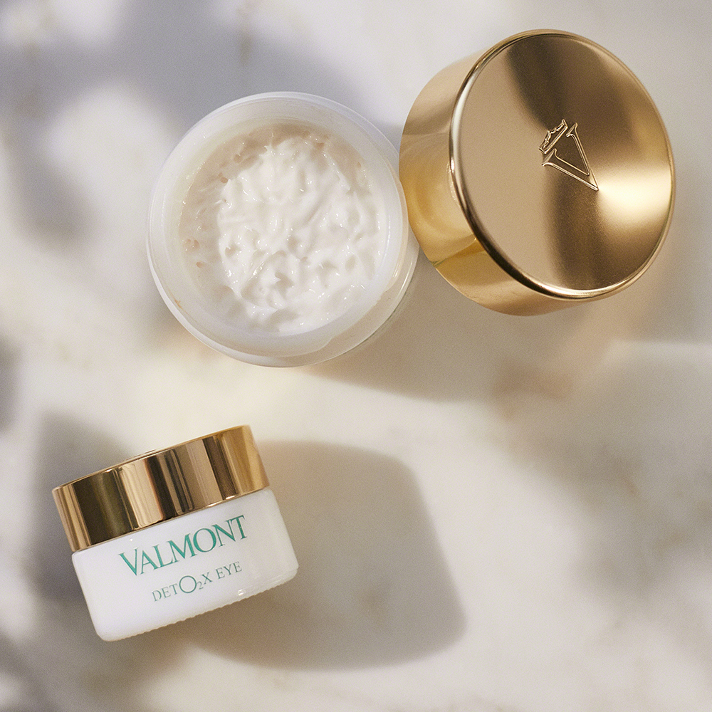 Vitaliserende oogcontourcrème. Met Zwitserse appelstamcellen en DetO2x-technologie levert het Valmont’s O2 Complex aan de huidcellen, stimuleert zuurstofvoorziening en ontgift de oogcontour voor zichtbaar gladdere, vollere huid en een stralende blik.