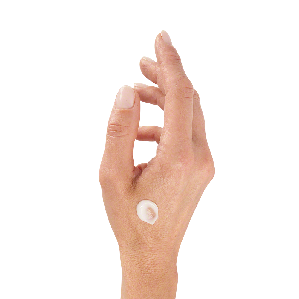 ’s Ochtends en/of ’s avonds, na uw serum, brengt u een hoeveelheid ter grootte van een hazelnoot aan op gezicht en hals.